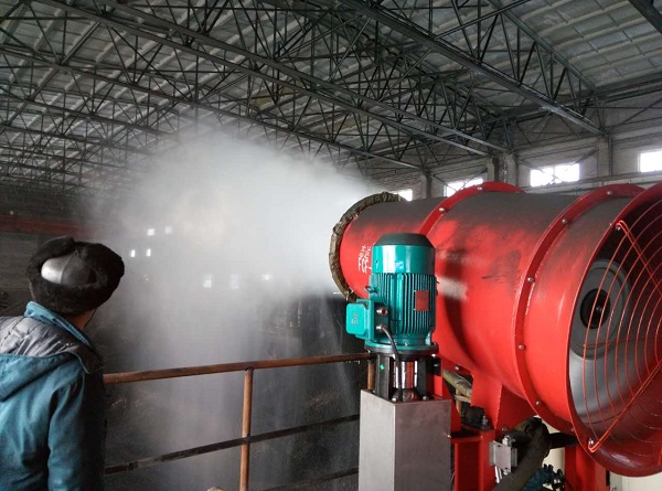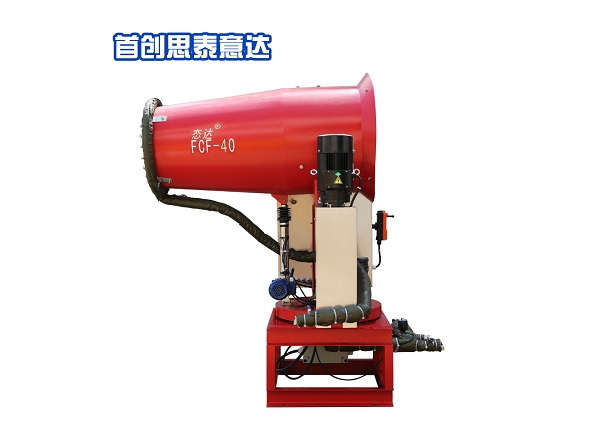“態達”牌遠程射霧器的抑塵原理,是通過高壓將水霧化成與粉塵大小相當的水珠,在風機作用下,將水霧拋射到遠方。